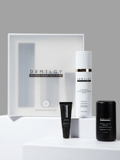 Stay protected head to toe with our SPF Sun Essentials Set. Packed with all the sunscreen essentials you need for an easy-to-apply sun care routine. Perfect for daily use, this set ensures your skin stays safe and radiant under the sun. SPF 25 Lip Balm ensures your lips stay hydrated, nourished, and protected. Hydra Stick SPF 34 is a broad-spectrum easy-to-apply, non-greasy, and mess-free sunscreen. Universal Tinted Moisturizer SPF 46, a best-seller, delivers lightweight radiant coverage with hydrating, anti-aging ingredients. Includes full-sized bottles of: